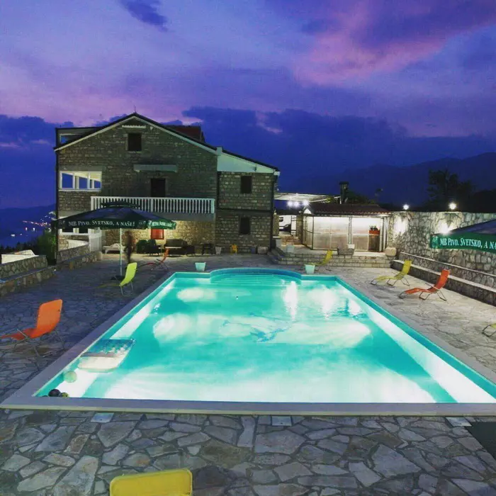 Spacious villa with a pool and garden. It consists of several apartments and a restaurant with a kitchen.