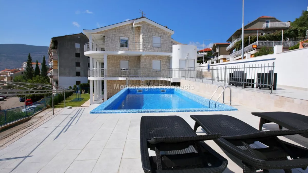 The house is located in Topla, Herceg Novi on the road to Spanjola. The actually size is 320m2 . It has 4 floors and is being sold as one large property though is currently being used as 3 seperate apartments. The ground floor is currently a one bedroom apartment with kitchen/living area and a bathroom. The first and second floor is a 4 bedroom duplex with an internal staircase, kitchen/dining area, large living room, bathroom and balcony. The top floor (attic) has one bedroom, a bathroom, large kitchen/living/dining area and a balcony. Each floor has its own seperate entrance and there is a private garage next to the ground floor entrance. The house has stunning views over the bay and has road access to the main adriatic highway, Topla and Trebinje. It is being sold partly furnished and has been finished to a high standard.
