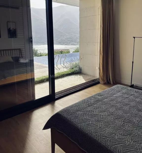 This exquisite villa in Dobrota combines modern luxury with breathtaking panoramic views of the bay, featuring a private pool and elegant design.