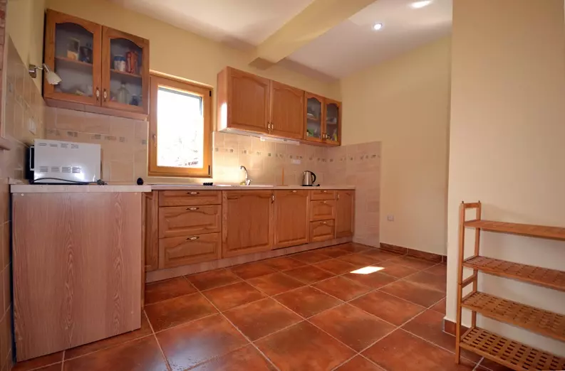 On the second level there is a spacious living room with a fireplace and access to the terrace and garden, the kitchen is equipped, hallway, bathroom, stairs to the third level.