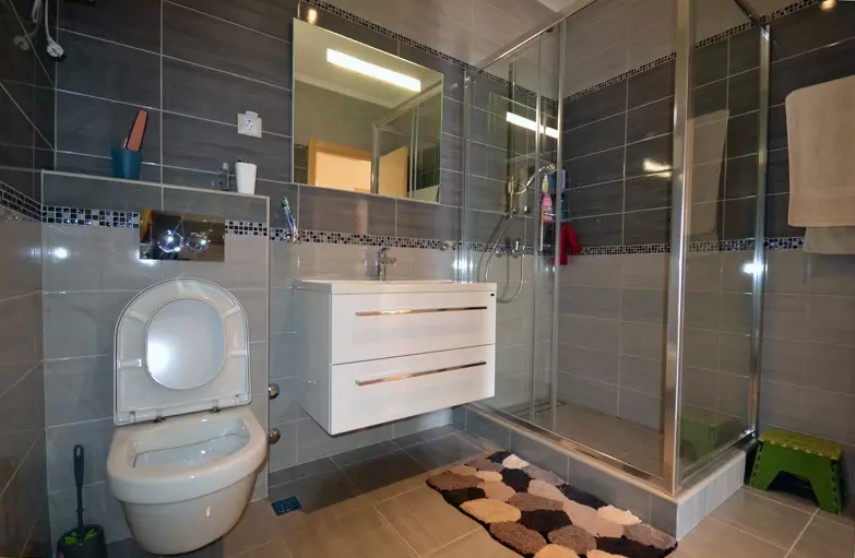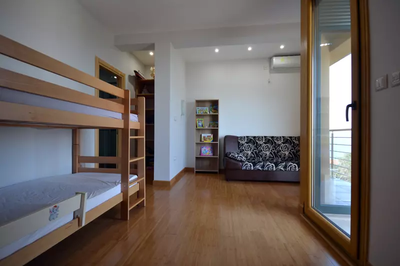 It consists of three levels. On the first level there is a garage, laundry room, larger room that can be used for a sauna or similar, bathroom, internal stairs to level 2.