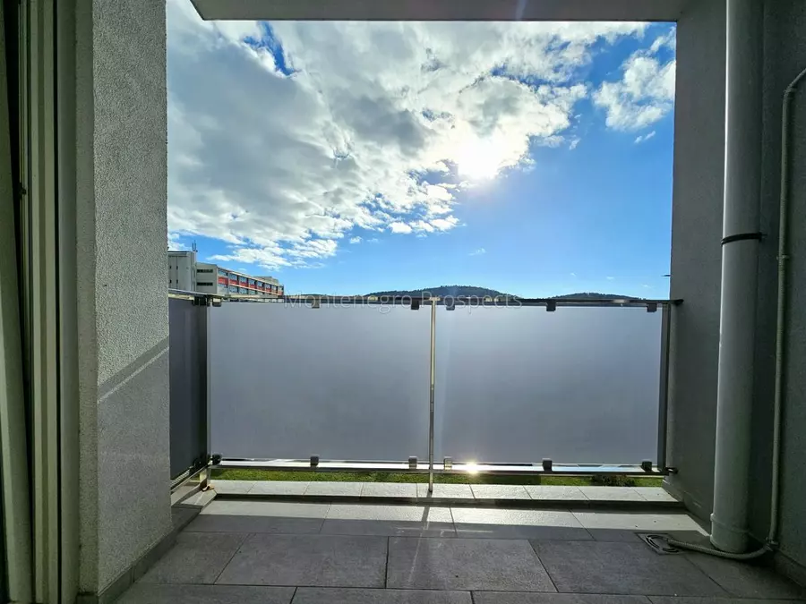 Its layout includes an entryway, a bathroom with a shower, a living room with a kitchen, a terrace, and a bedroom. The terrace is accessible from both the living room and the bedroom. The apartment is southeast-facing.