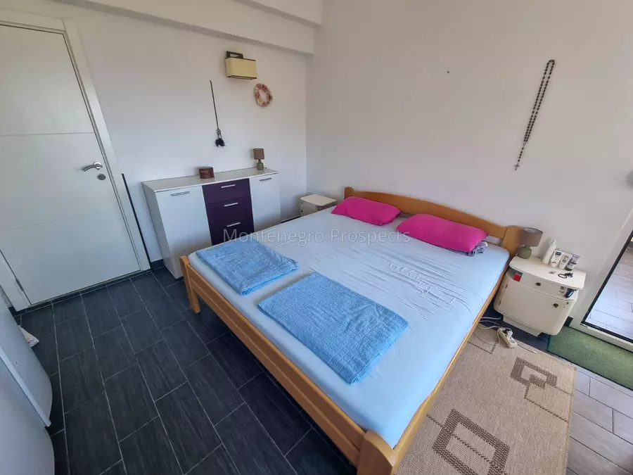 An apartment with a living area of 104m2 on two levels in a small building, with its own separate entrance, is for sale. It is located in a good location in Petrovac, less than 650 meters from the beach and is surrounded by greenery. There is a direct view of the sea and Petrovac from both levels of the apartment, and the position of the apartment allows it a lot of natural light throughout the day.