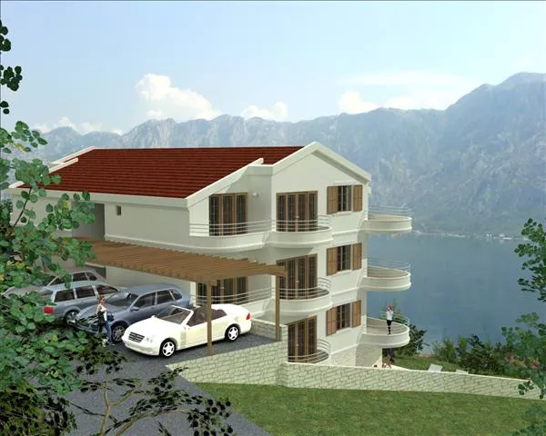 Urbanized plot of land for sale in Prcanj, located close to the sea, with beautiful views of the bay and permission to build a three level building of maximum 690m2.